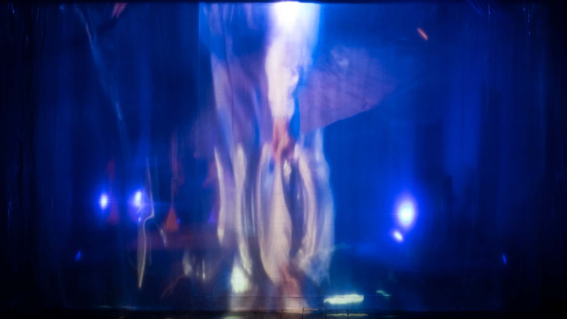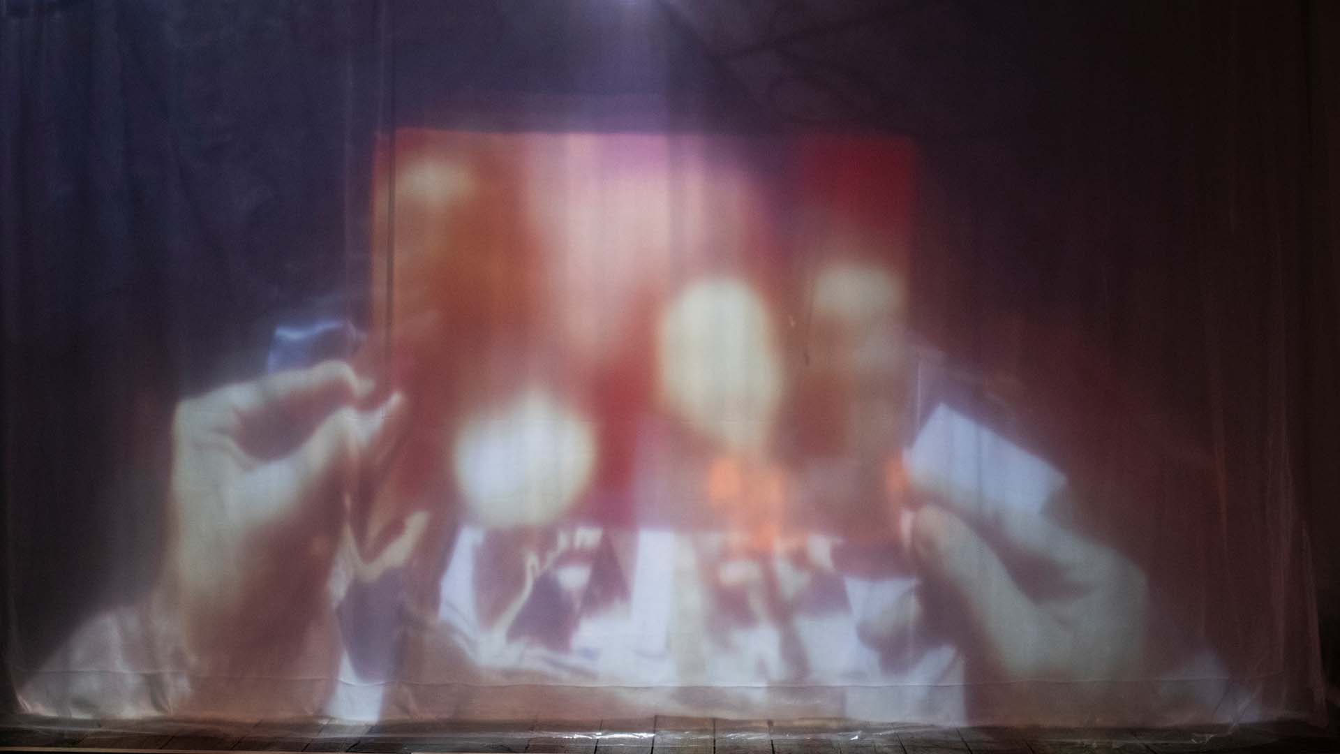 A performance from a single source: light and music, movement of the original and the images of the virtual doppelganger, everything is finely coordinated.