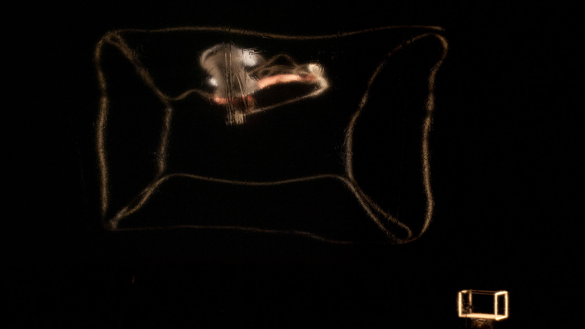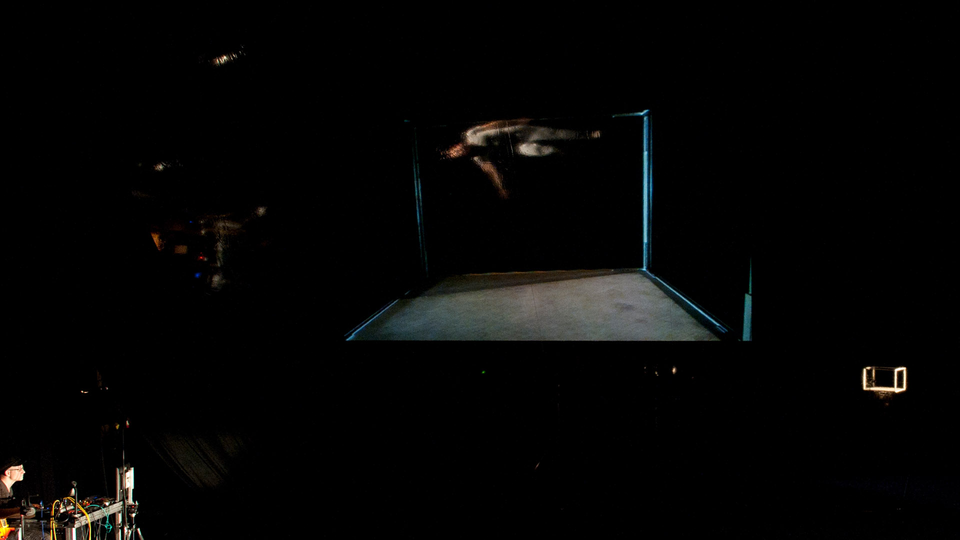 How can we place ourselves in a context, change it or leave it? In his solo, Jan Machacek performs in spatial models and via projections of his own body. He tries to position his body in a model space through images created by lenses, glass reflections and other means. The performance is inspired by the peppers ghost effect, a forerunner of cinema and animation technology, in which ghostly apparitions were put on stage. Machacek’s character is a hybrid figure in search of place and context: a show ghost in search of space.